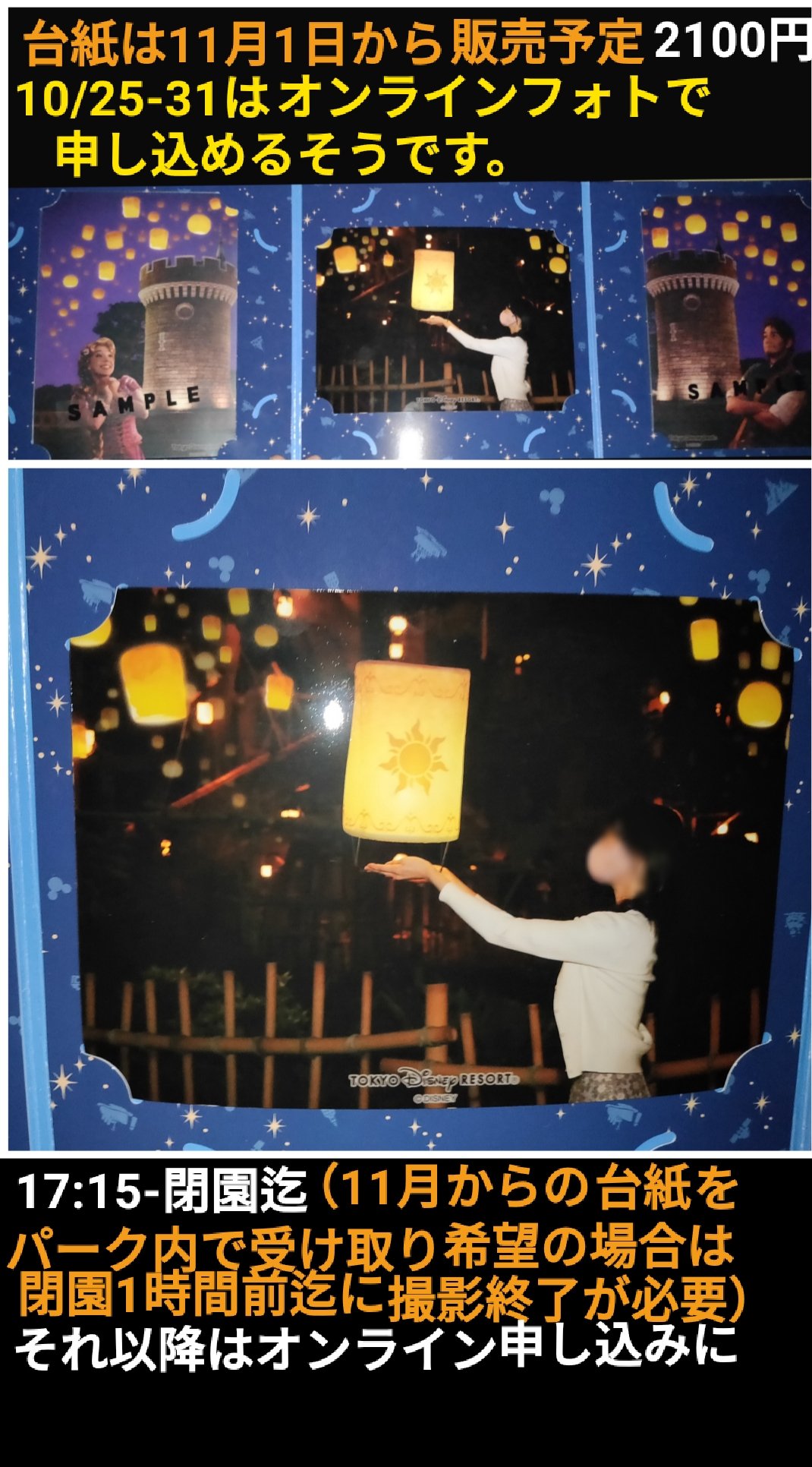 Tdr ディズニー ぷらん 本日販売開始 初登場 ラプンツェル フォトファン 公式未掲載 ランタンと一緒に撮影 ディズニーフォト 塔の上のラプンツェル フォト ファン 31日迄はオンラインのみ 台紙は11月1日から発売予定 2100円 写真撮影 予定時間 17 15
